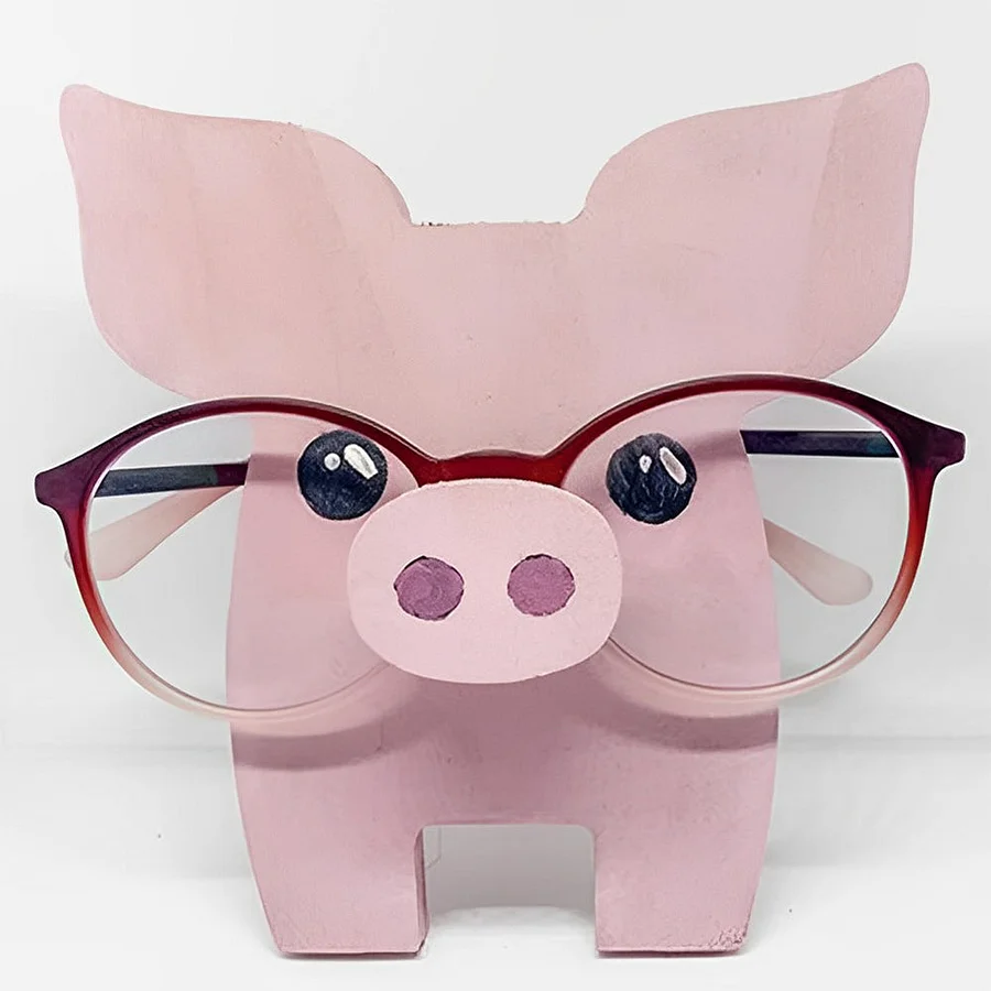 Wooden Cartoon Pink Pig Eyeglass Holder